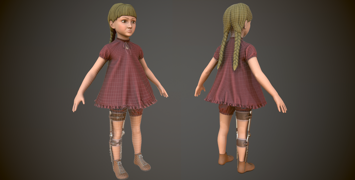 - I made the model in Zbrush, cloth in Marvelous, retopo and uv in Maya, textured in Painter, rigged and animated in Maya. The hair and dress are slightly effected by Unity physics.